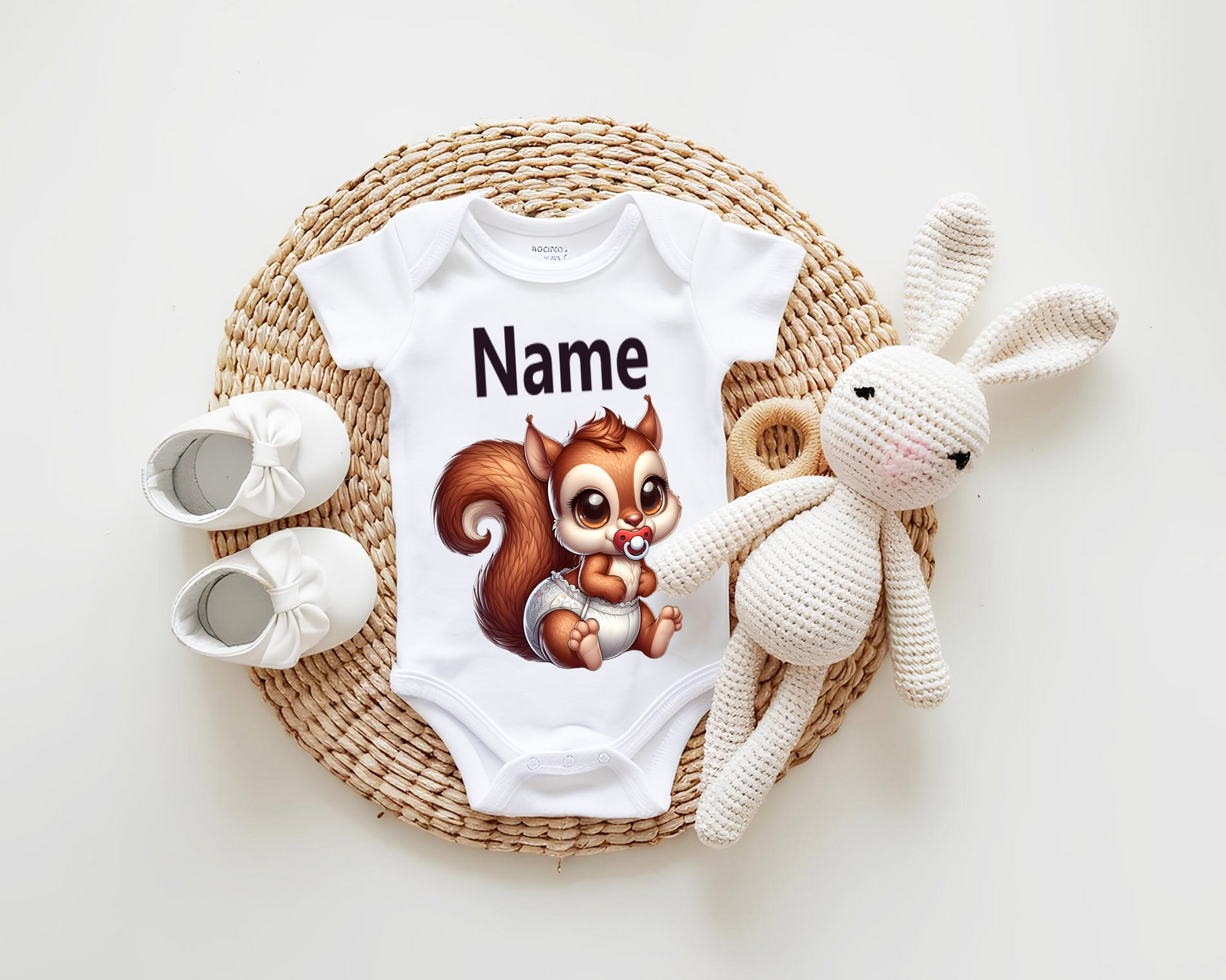 Personalized baby bodysuit with your little one’s name. A beautiful gift for a baby shower, a timeless keepsake of this special day, or the sweetest outfit for a photoshoot.