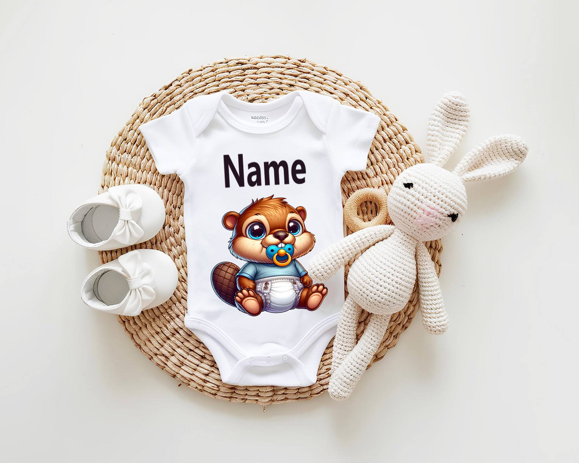 Personalized baby bodysuit with your little one’s name. A beautiful gift for a baby shower, a timeless keepsake of this special day, or the sweetest outfit for a photoshoot.